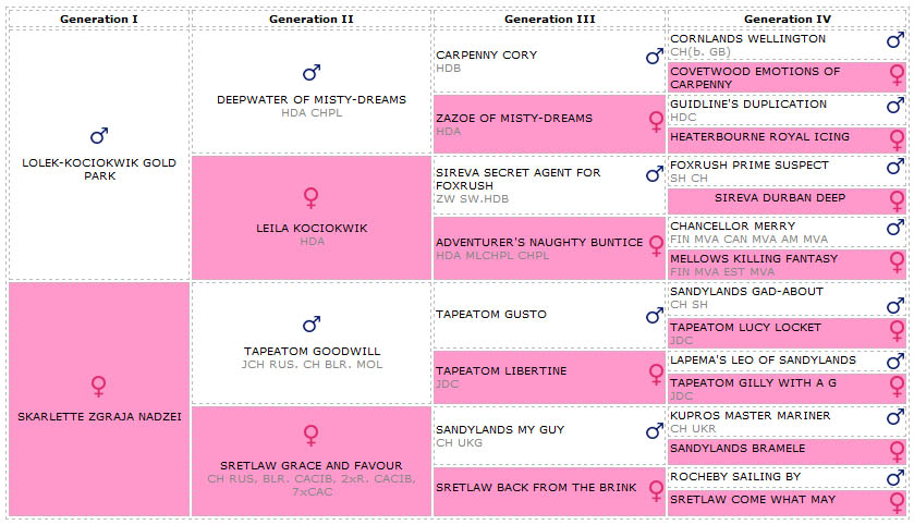 Щенки "Х" — 22.07.2012 г. LOLEK-KOCIOKWIK GOLD PARK Кобель SKARLETTE ZGRAJA NADZEI Сука Фото РОДОСЛОВНАЯ